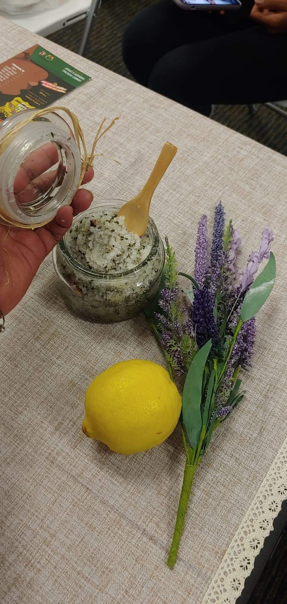 Made with Epsom Salt Dead Sea Salt. Fresh Lavender/Lemon zest blend Vitamin E and Coconut Oil.